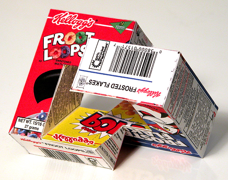 first test uses three "variety pack"-size cereal boxes, adding